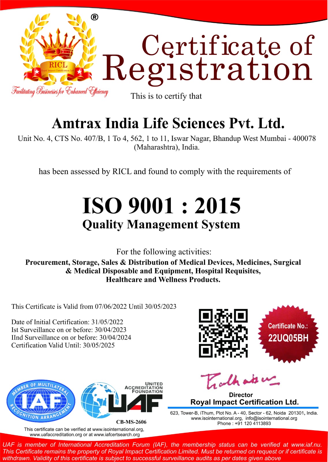 Certification : ISO 9001:2015 A fully integrated Quality Management System certified to ISO 9001:2015 .This includes a detailed and clear Quality Policy and provides a framework for the setting and reviewing of our Quality Objectives in addition to our commitment to satisfy customers regulatory and legislative requirements as well as our commitment to continually improve.